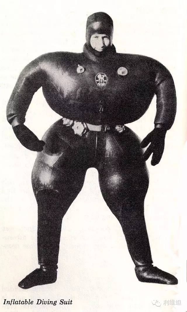 此款气压式潜水衣能让潜水员在300米的水下不限时的工作,解压的过程也很短暂。(1974)