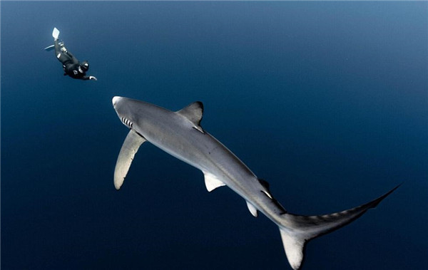 调整自己的呼吸,深深地吸气,缓缓地吐气,想象自己的心跳也渐渐放缓,自己开始和这片水融为一体。注意,不要这么快就让身体彻底地放松。最后三口深呼吸,踢腿,下潜,双手指向大海的方向,不断耳压平衡。