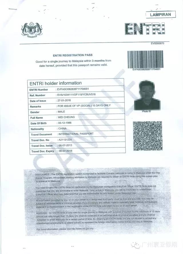 第一种:马来西亚政府专门为中国公民量身定做的签证类型ENTRI。