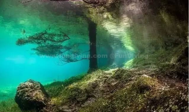 也许你曾经也有来这里探索世界上最美丽湖底公园的计划,这里也因为清澈透明且独特的水底景致,成为了独一无二的潜水胜地,然而很抱歉的告诉你,很多潜水员的梦想破灭了,你的计划已经过期,今年当地政府将禁止绿湖潜水!据英国《每日邮报》报道,奥地利的绿湖(GreenLake)是久负盛名的潜水圣地,但出于保护环境的考虑,当地政府于2016年1月出台政策,禁止在绿湖中潜水。奥地利施蒂利亚的绿湖是一个高山湖泊,它是奥地利最独一无二的潜水之地。绿湖位于山顶被白雪覆盖的霍赫史瓦山脉脚下。随着春天降临,这座公园被冰冷纯净的雪水淹没,由于水下有大量绿草和树木,该湖呈现与众不同的绿色。水下探索者将会在绿湖的湖床上发现鱼儿从树枝、绿草茵茵的地面、长椅、桥梁和一处看起来很像陆上风景的地方悠闲地游过。之所以会是这样,是因为就在半年前这片土地还位于陆上。绿湖位于山顶被白雪覆盖的霍赫史瓦山脉脚下。在寒冷的冬季,该湖几乎完全干枯,变成一座小公园。这里是远足者最喜欢的去处。但是随着春天降临,温度上升迫使山顶的冰雪融化,融水聚集到山脚的盆地里。这座公园被冰冷纯净的雪水淹没,由于水下有大量绿草和树木,该湖呈现与众不同的绿色。 晚春和夏初,这里的水位从冬季的大约1到2米,上升到高达10米。每年6月它的水位最高,此时它成为渴望探索这一罕见现象的潜水爱好者最向往的地方。每年7月底它的水位开始下降。