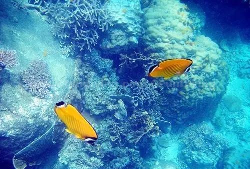 由于有着天然珊瑚礁长堤的护卫,这里浪很小,鱼儿在珊瑚礁中毫无顾忌地生长。带上鱼食,戴好浮潜装备,纵身蓝色怀抱,就有无数的鱼儿围着你打转。海水非常清澈,在水下可以看到射入海底的缕缕阳光,水下的一切都是那么清楚,美丽的珊瑚礁,与人共舞的鱼群,都看得清清楚楚。