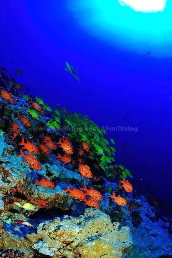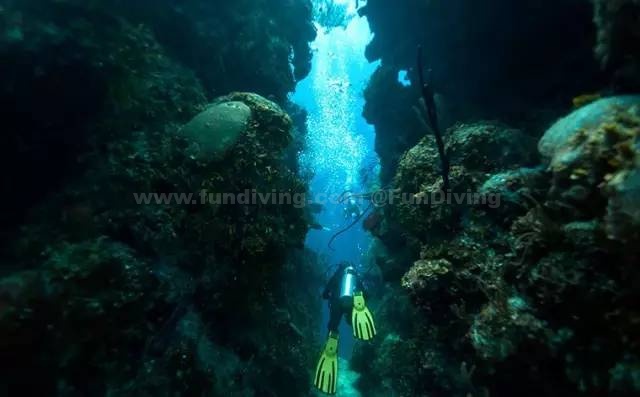 当然,如果你是资深潜水爱好者,也可以在这里寻求更刺激的冒险——深海潜水。到达16米高的天然岩壁裂缝,潜水者可以顺着岩壁爬升。