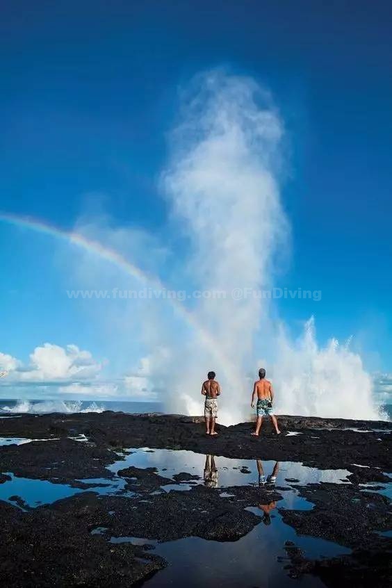 在这里最大的一个洞口,据说最流行的方式是在洞口放上一个椰子,看巨大的喷射力能把椰子推到多高。反正在这种巨大的威力作用下,小小的椰子就像一枚炮弹一样BIU的一下飞出去了!