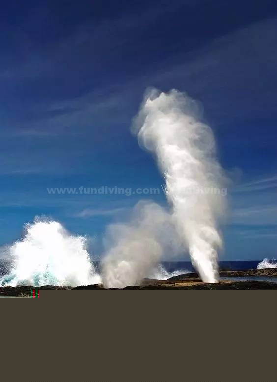阿喽法嘎风洞的水最高可以被吹起来二十多米,看过去就好像鲸鱼在海里喷水一样!